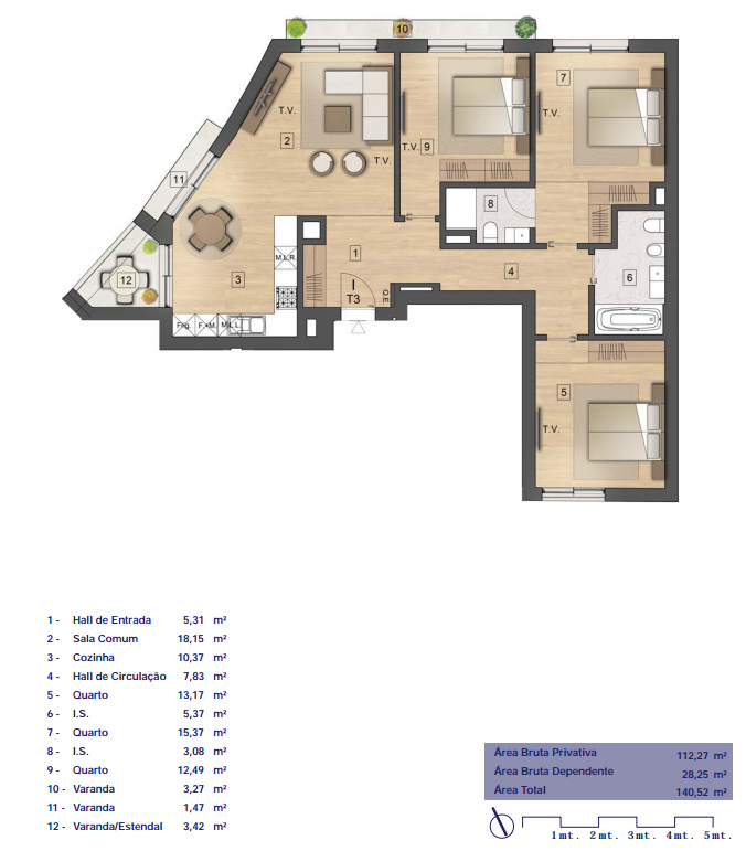 A zona social em open space integra uma cozinha totalmente equipada com eletrodomésticos AEG e uma sala ampla, iluminada pela generosa varanda – perfeita para convívios ou momentos de tranquilidade. Os três quartos, um deles em suíte, distinguem-se pelas áreas generosas e acabamentos modernos, acompanhados por duas casas de banho equipadas com cabines de duche de grandes dimensões.